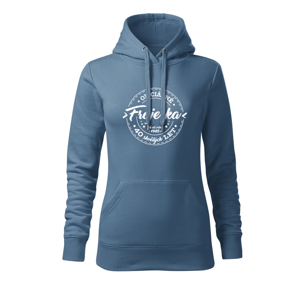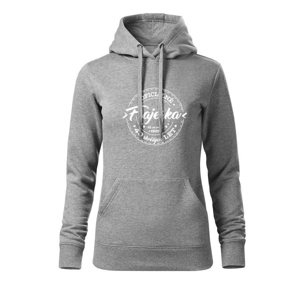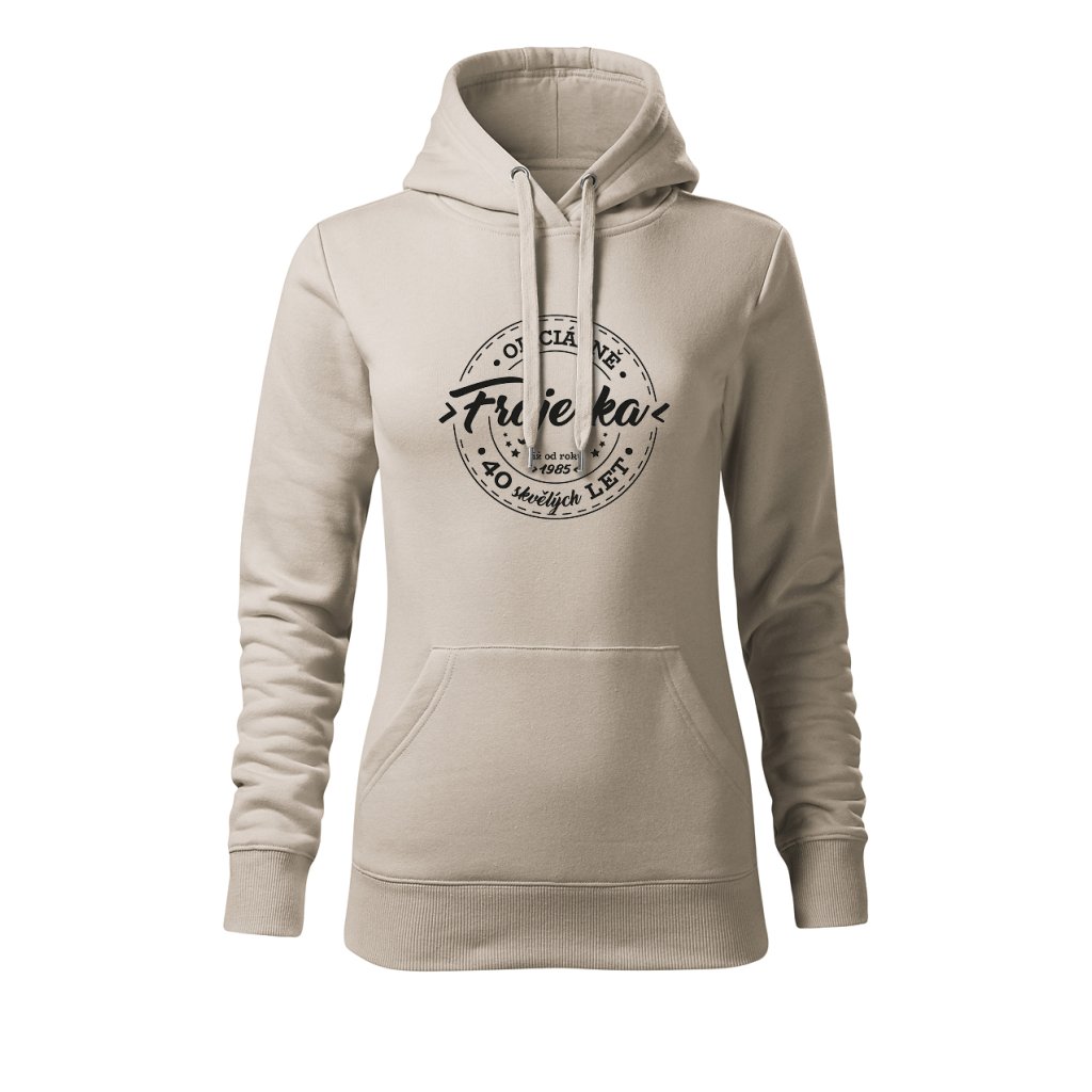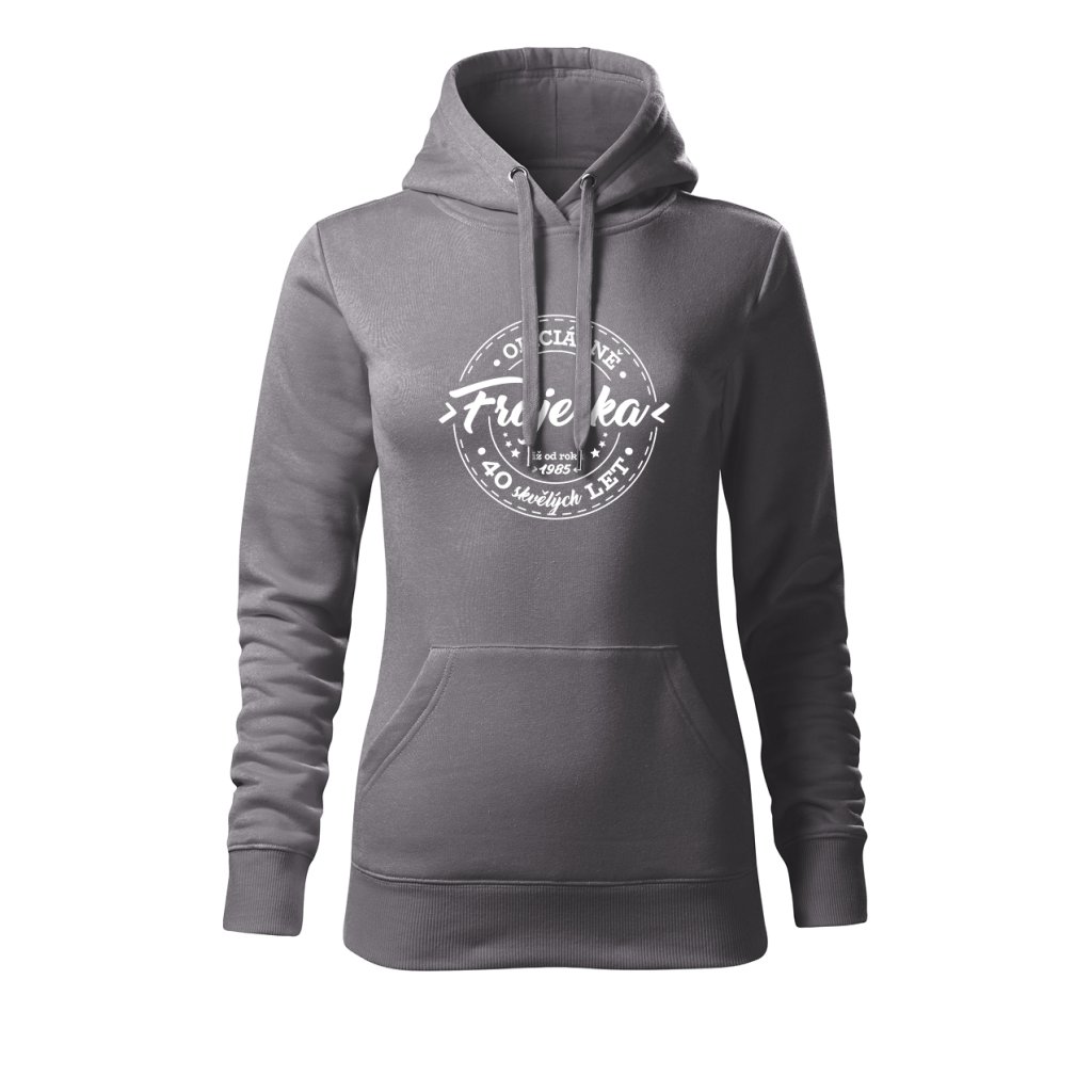Dámská mikina s kapucí s motivem „Oficiálně frajerka“ spojuje stylový vzhled s osobním nádechem. Na přední straně výrazný potisk s letopočtem narození a nápisem „XX skvělých let“, který připomíná, že oslavy patří i do každodenního šatníku. Měkký materiál a pohodlný střih ji dělají ideální pro víkendové chvíle i narozeninové večírky.