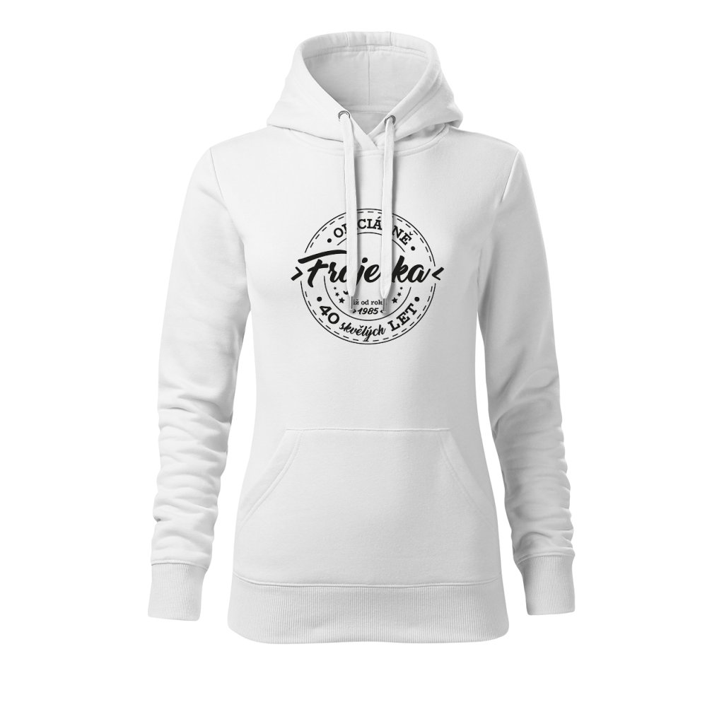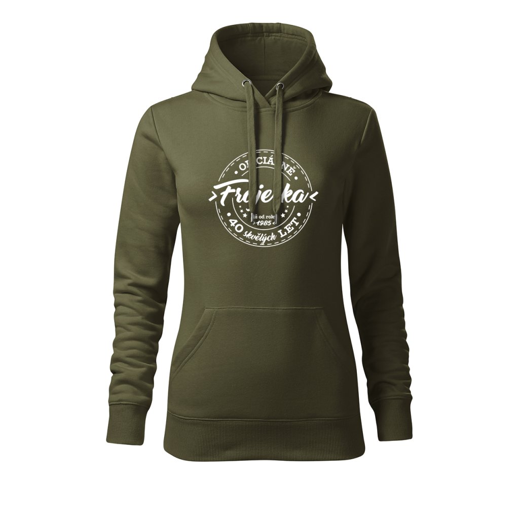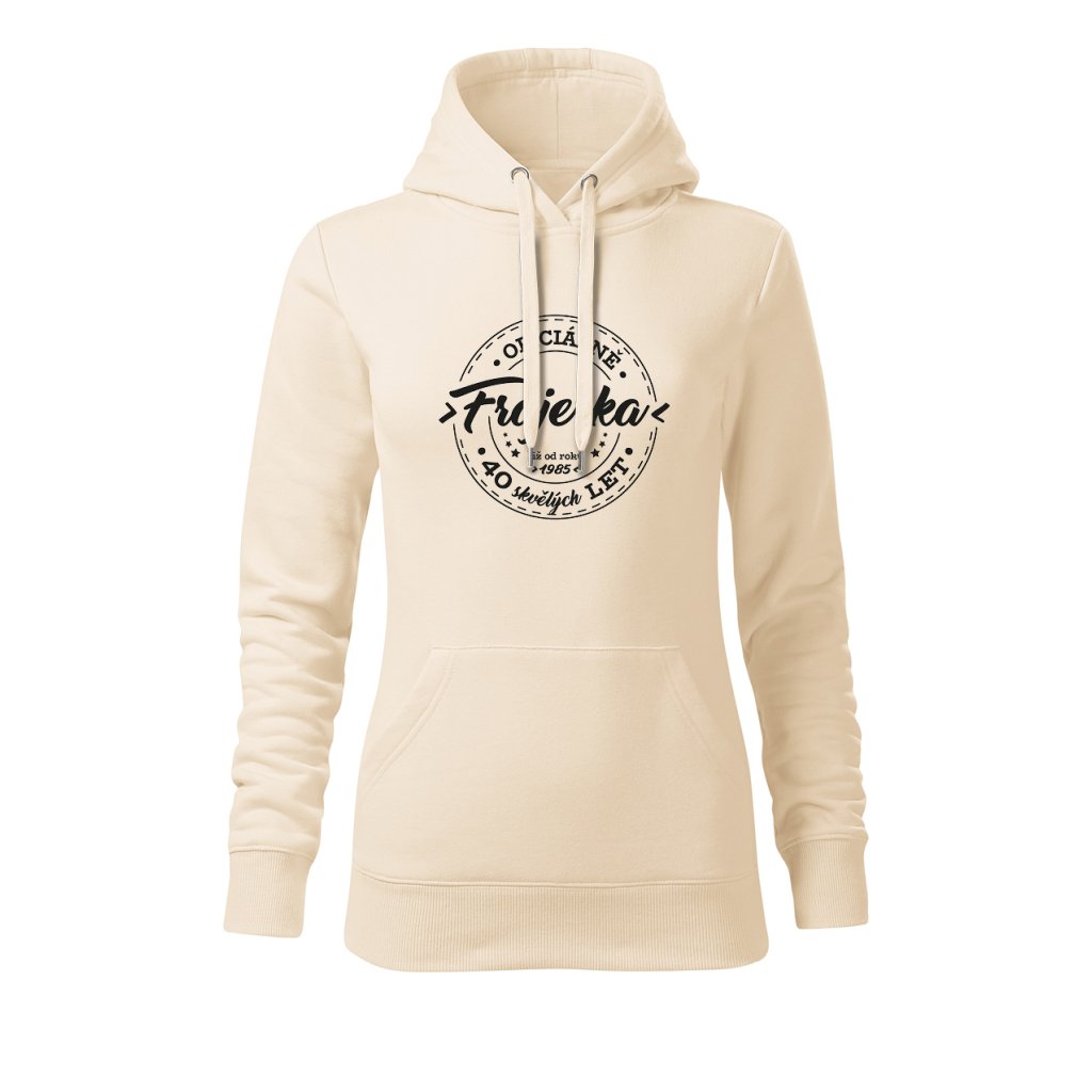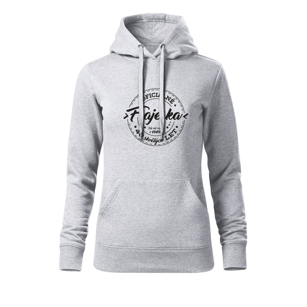 Dámská mikina s kapucí s motivem „Oficiálně frajerka“ spojuje stylový vzhled s osobním nádechem. Na přední straně výrazný potisk s letopočtem narození a nápisem „XX skvělých let“, který připomíná, že oslavy patří i do každodenního šatníku. Měkký materiál a pohodlný střih ji dělají ideální pro víkendové chvíle i narozeninové večírky.