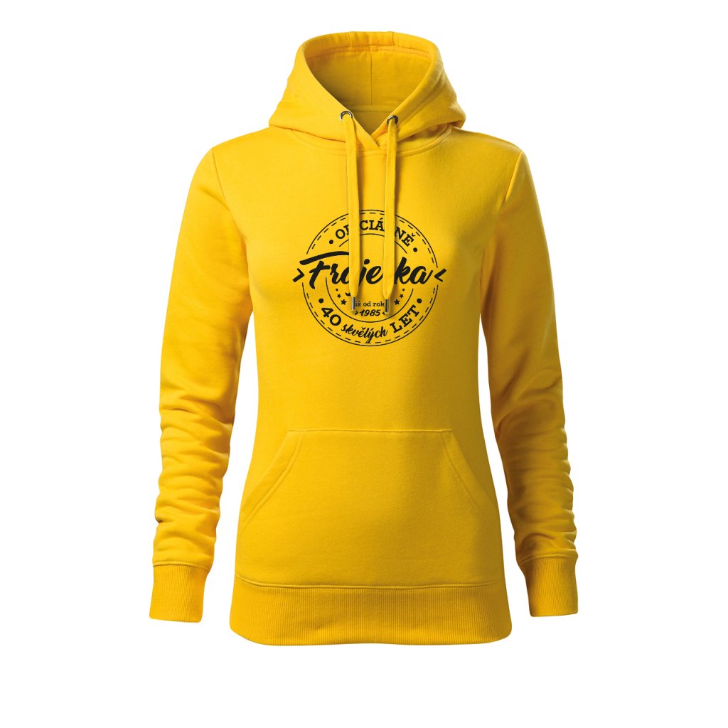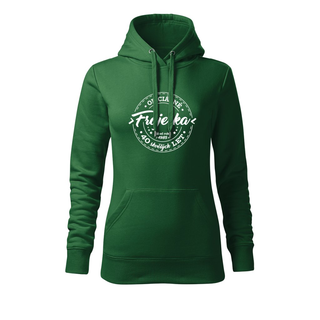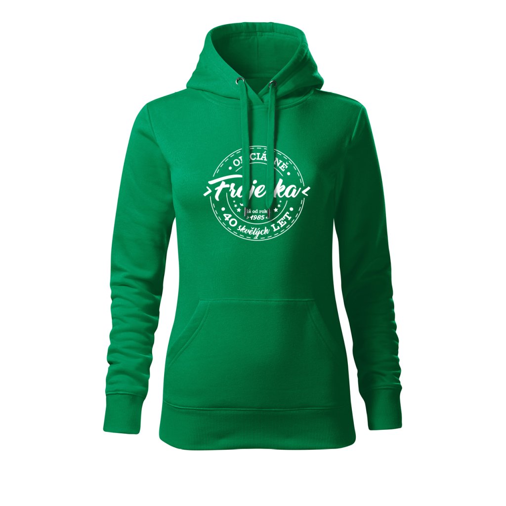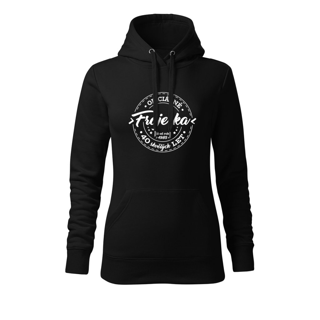Dámská mikina s kapucí s motivem „Oficiálně frajerka“ spojuje stylový vzhled s osobním nádechem. Na přední straně výrazný potisk s letopočtem narození a nápisem „XX skvělých let“, který připomíná, že oslavy patří i do každodenního šatníku. Měkký materiál a pohodlný střih ji dělají ideální pro víkendové chvíle i narozeninové večírky.