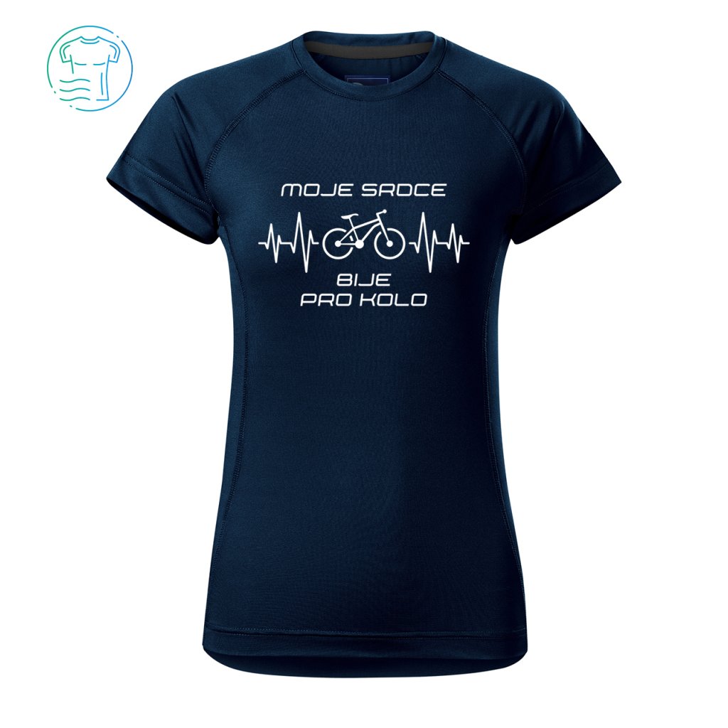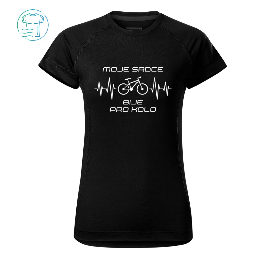 Když styl a výkon jedou v jednom rytmu. Funkční tričko pro cyklo srdcařky. S textem „Moje srdce bije pro kolo“.