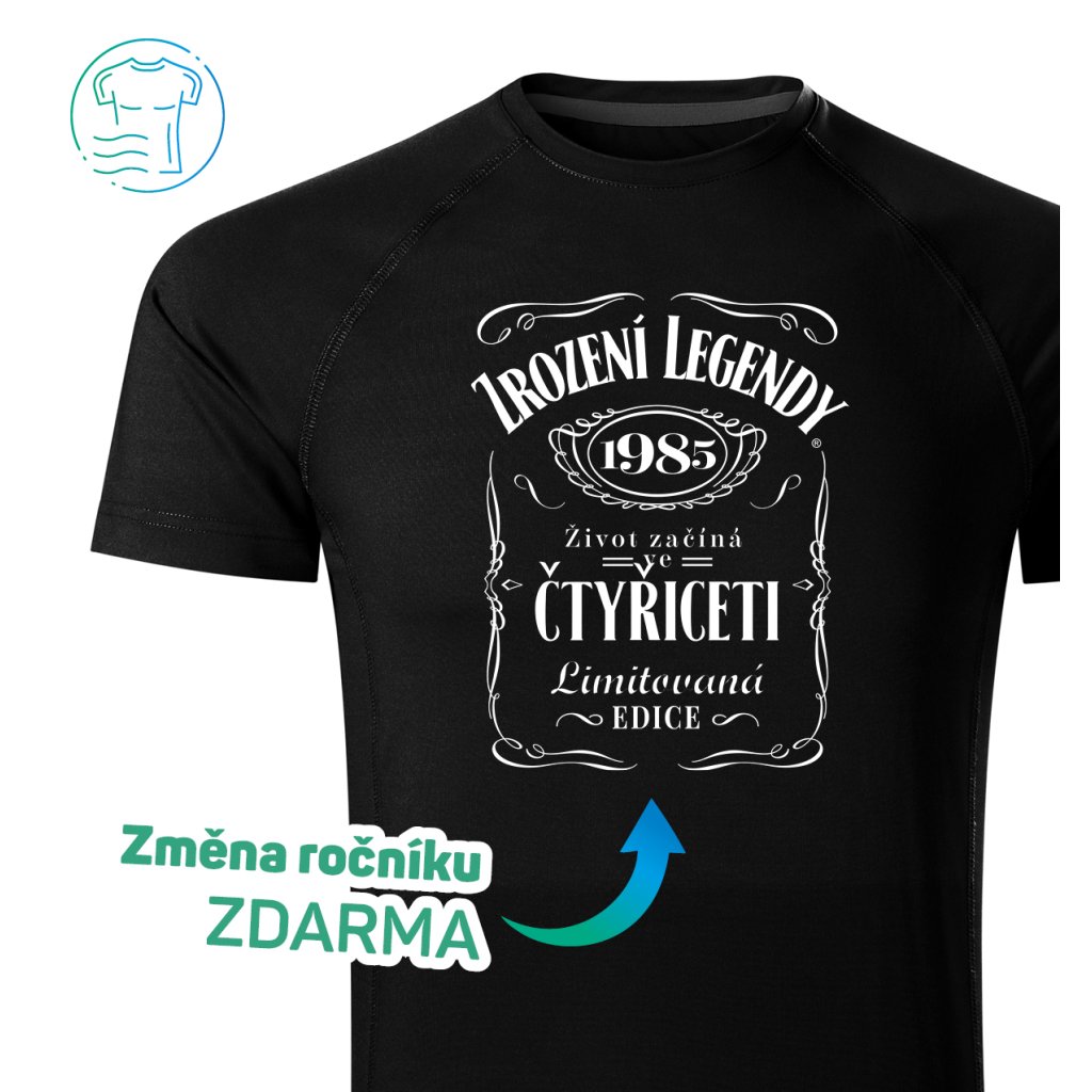 I legenda potřebuje občas zaběhnout pár kilometrů. Sportovní tričko s whiskey motivem přináší nadhled, styl a funkčnost v jednom. Grafika s nápisem „Zrození legendy“ a „Život začíná ve... [ročník]“ je vtipným kontrastem k technickému střihu a rychleschnoucímu materiálu. Perfektní pro aktivní oslavence, kteří chtějí běhat (nejen) za svou slávou.