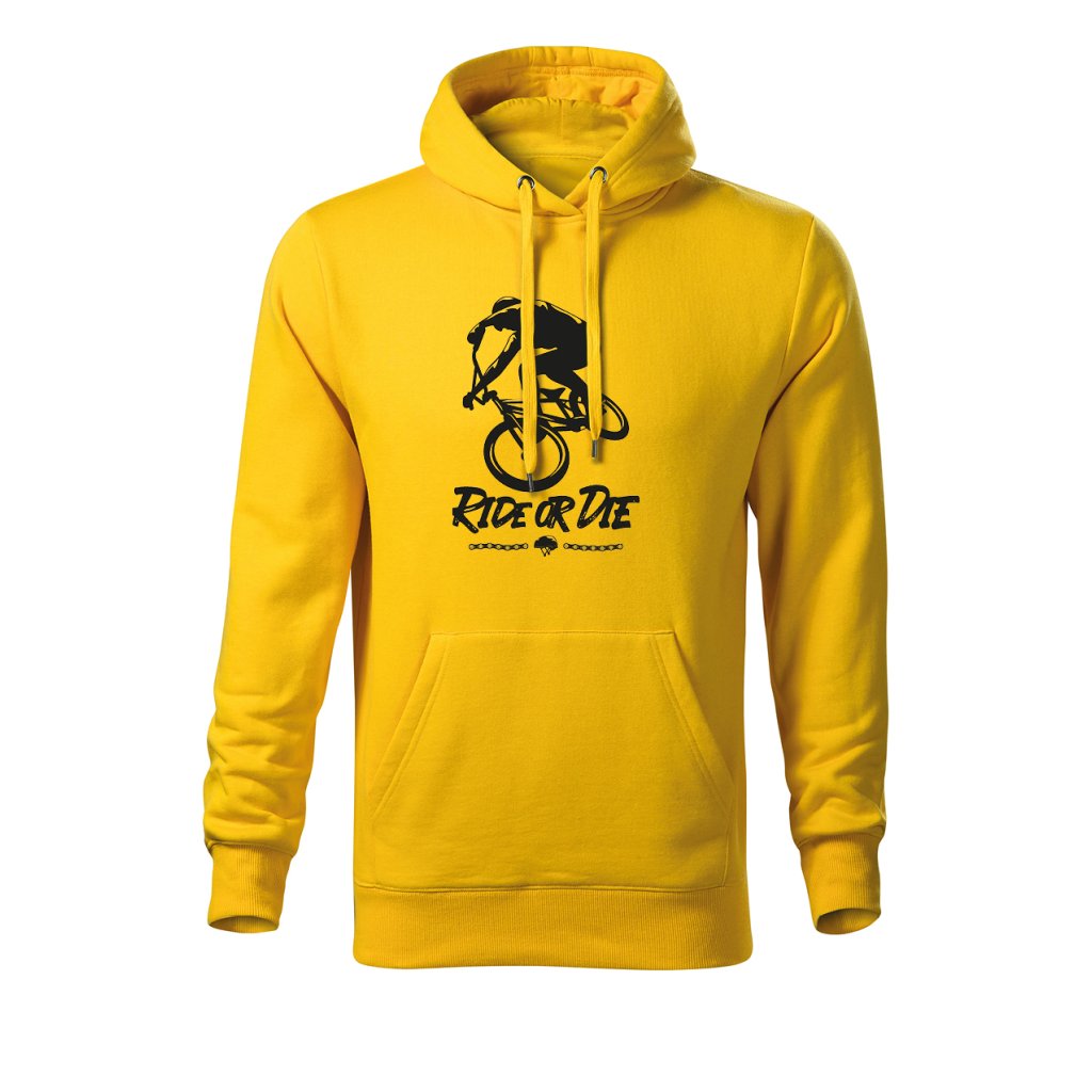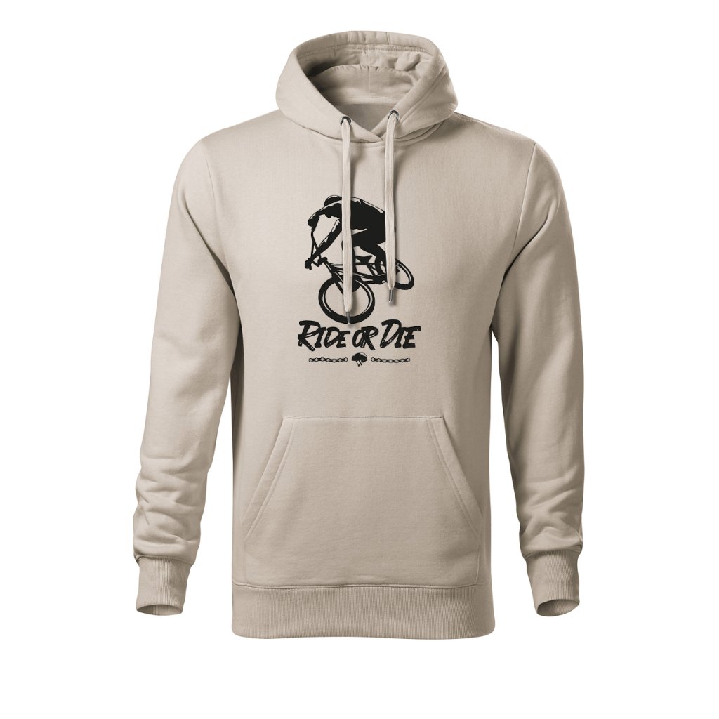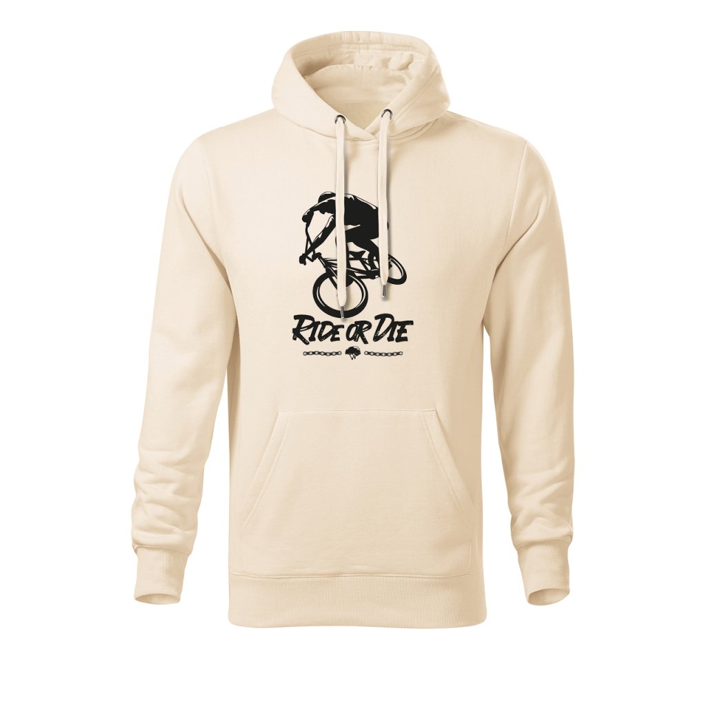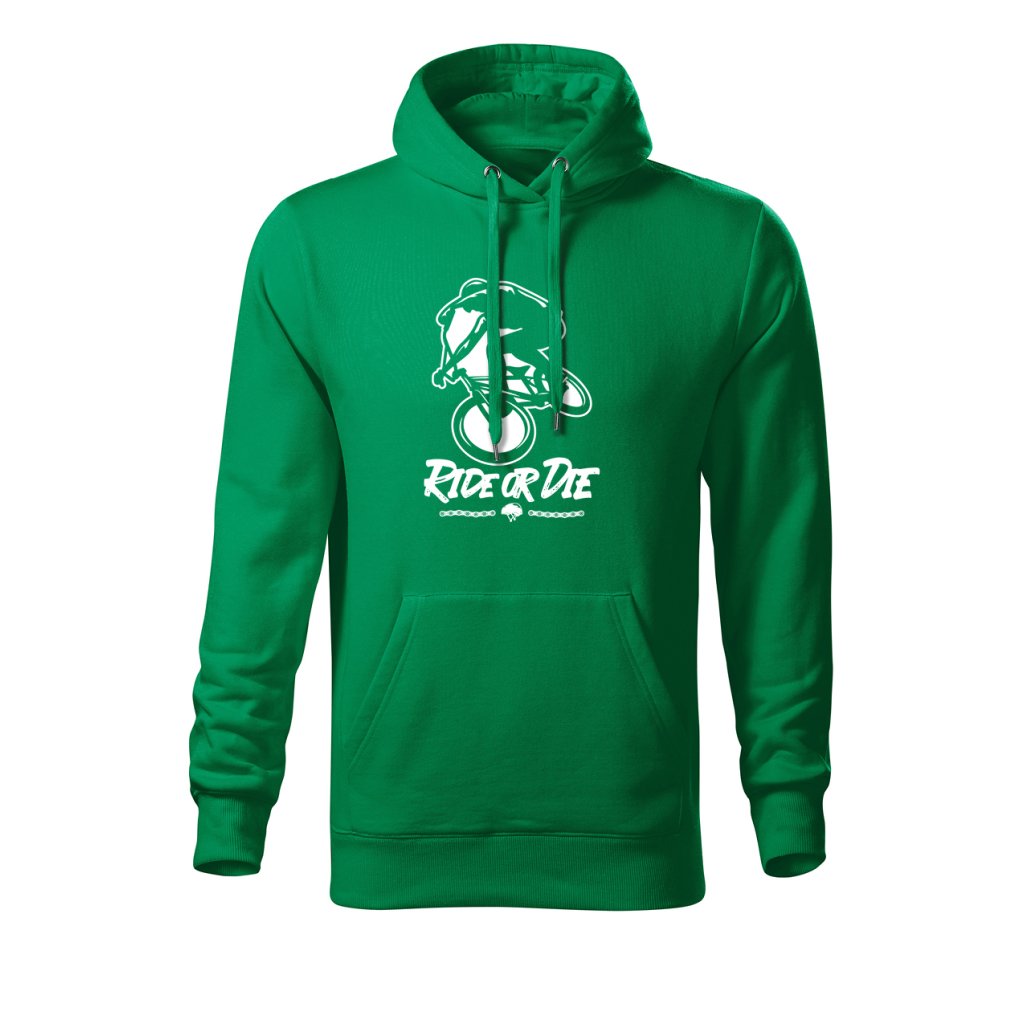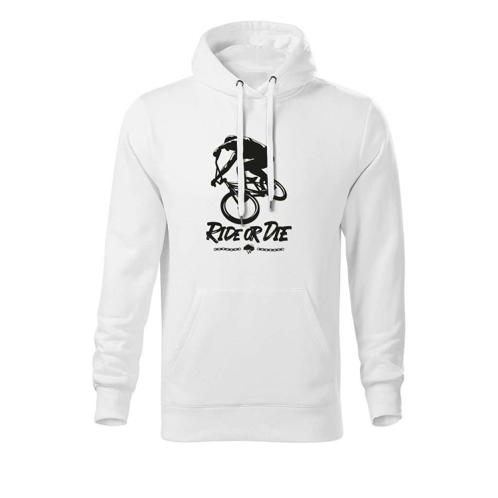 Pánská mikina s kapucí s výrazným potiskem – Freestyle kolo ve skoku a heslo „Ride or Die“. Vhodné na triky, na pivo i lehké projížďky. Akční tričko – jako tvoje jízda.
