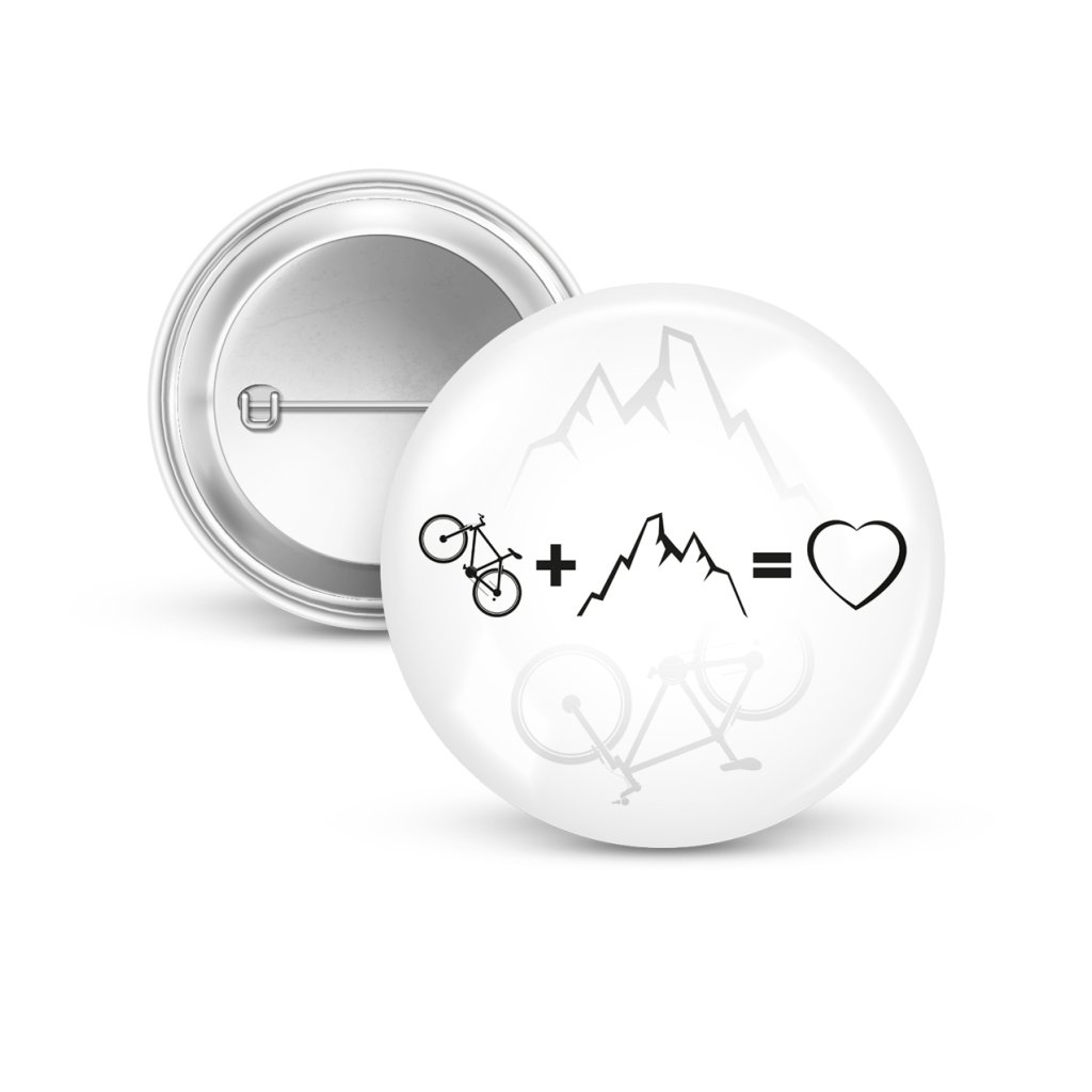 Připínací placka (button) se špendlíkem, s potiskem "Kolo + hory = láska". Když nemáš na sobě cyklo dres, můžeš mít aspoň button. Připni si na batoh, bundu nebo helmu a dej okolí jasně najevo, kam patříš – na kolo.