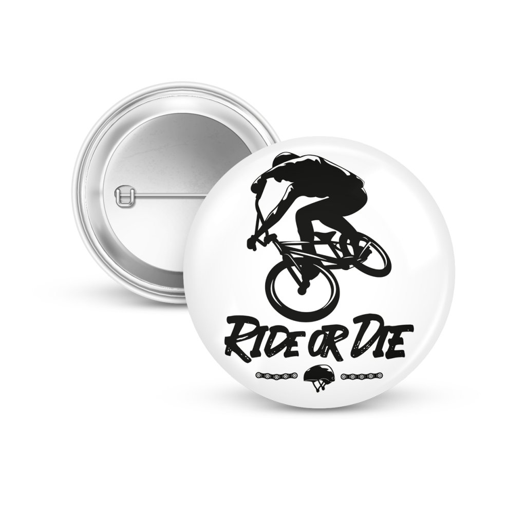 Připínací placka s motivem skákajícího Freestyle kola a nápisem „Ride or Die“ – na batoh i bundu.
