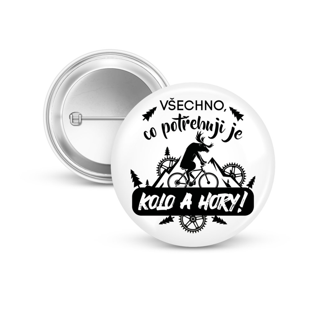Připínací placka (button) se špendlíkem,, která řekne všechno za tebe: „Všechno, co potřebuji je kolo a hory.“ Design s kolem, horami a jelenem tě vystřelí rovnou mezi outdoor elitu. Hodí se na batoh, bundu, cyklo brašnu i jako originální dárek. Malá, ale výstižná jako tvůj oblíbený trail.