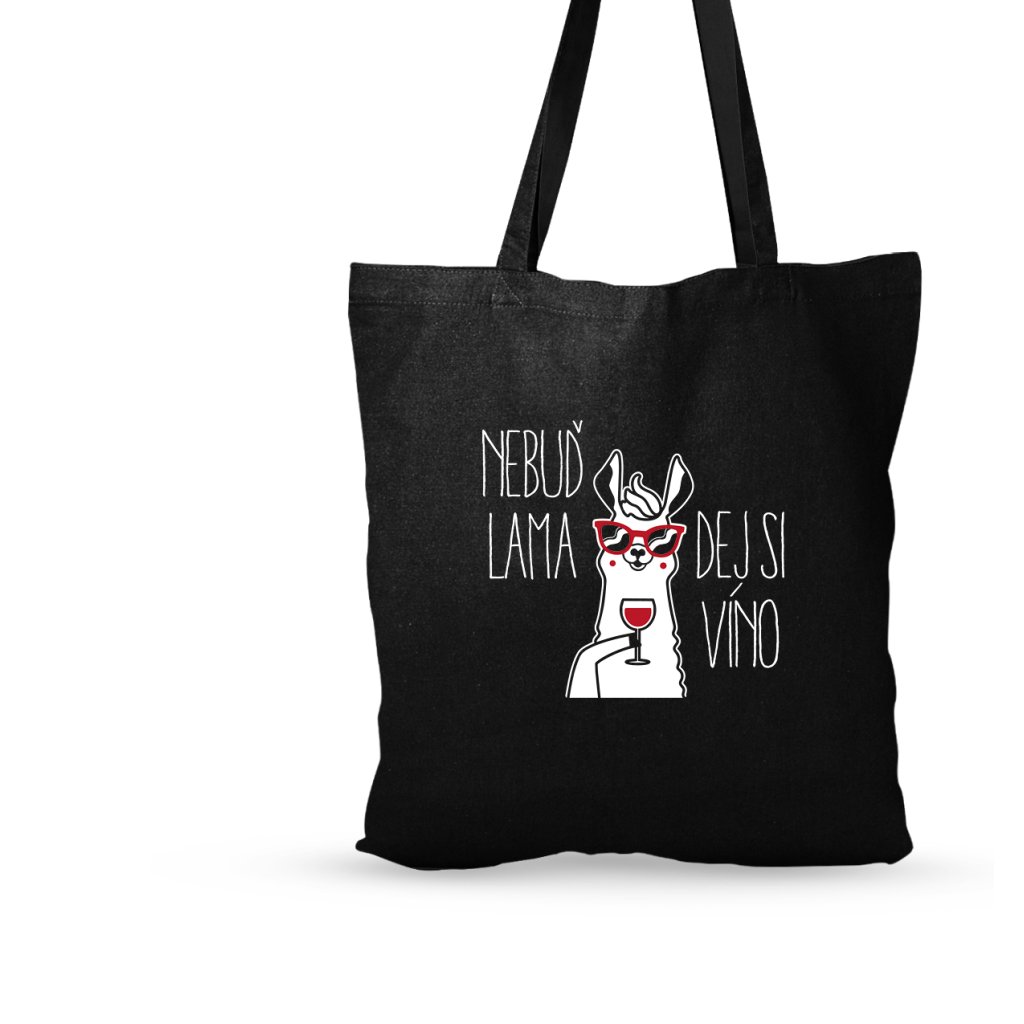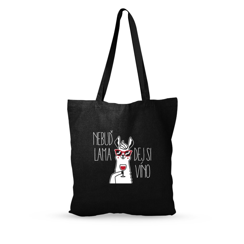 Plátěná taška s veselým motivem lamy a nápisem "Nebuď lama, dej si víno" je praktická i zábavná. Skvělá na nákupy, pikniky nebo výlety do vinic – pojme víc než jen dobré víno.