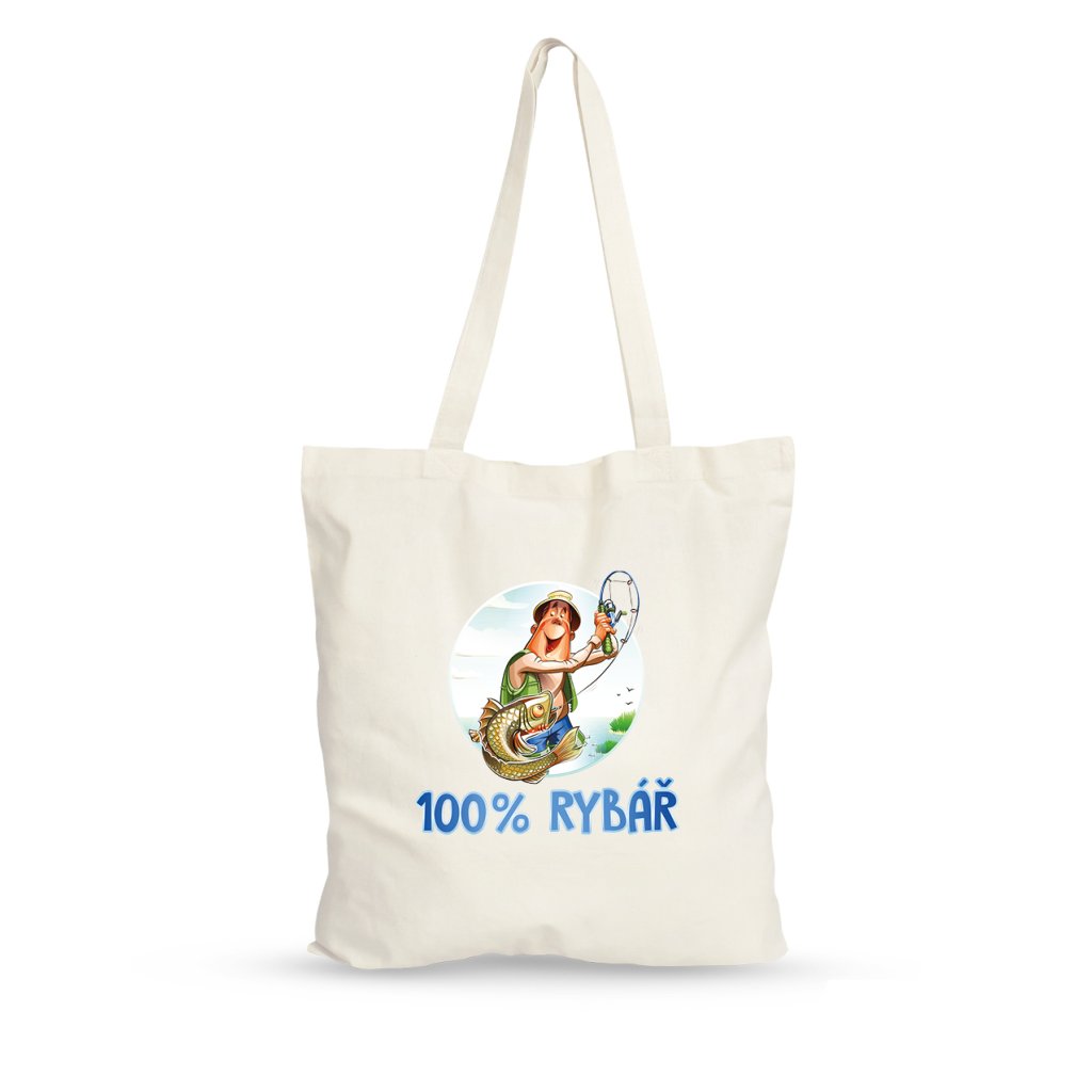 Stylová plátěná taška – s rybářským motivem a nápisem "100% Rybář".