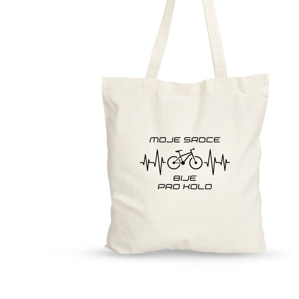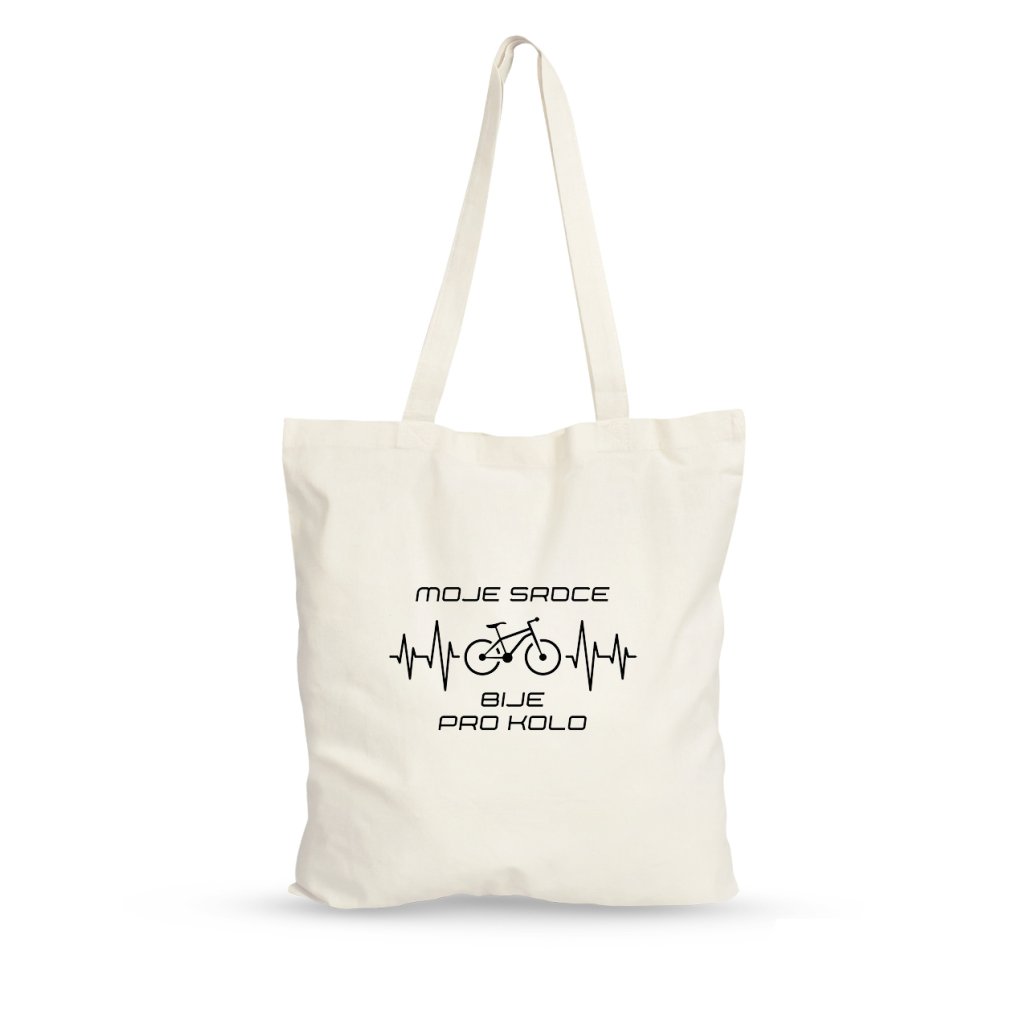 Ekologická a stylová plátěná taška s motivem, který mluví za vše: „Moje srdce bije pro kolo“. Potisk spojuje srdeční tep a kolo do designu, který z tebe udělá cyklistickou ikonu i mezi regály v obchodě. Praktická, pevná a plná stylu.