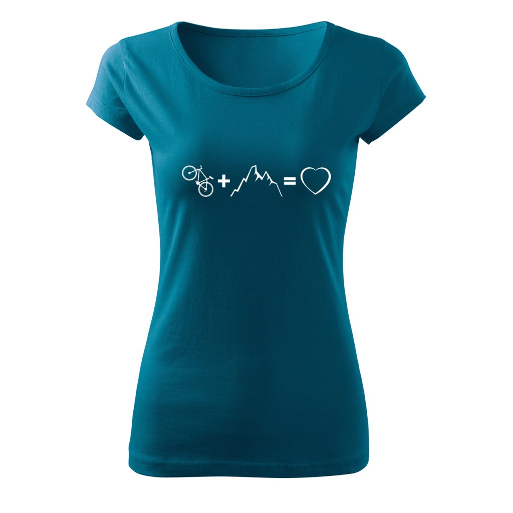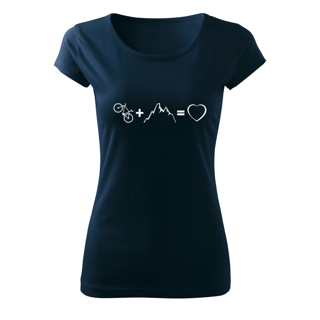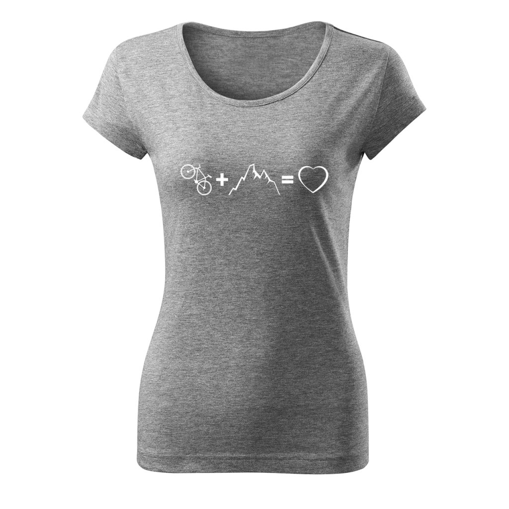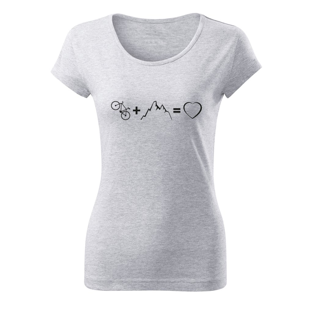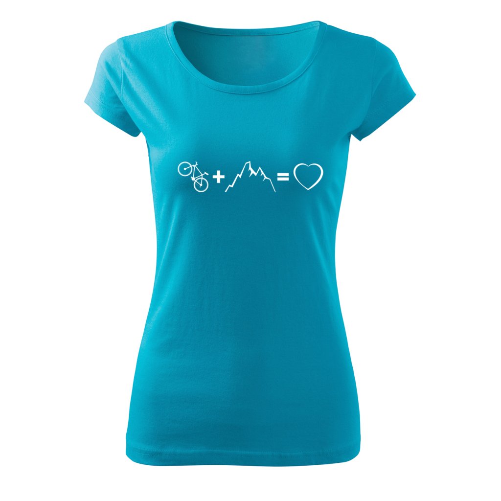 Tričko s motivem „Kolo + hory = láska“ je jako vyznání napsané na látce – jednoduché a srozumitelné. Grafika spojuje symbol kola a horských vrcholků do jednoho přímého vzkazu: cyklistika v přírodě je vaše vášeň. Příjemný materiál a pohodlný střih z něj dělají společníka na výlety i do města. Ideální pro všechny ženy, které mají srdce na dvou kolech a duši v horách. Ať už stoupáte do kopce nebo jen tak sedíte u kávy – tohle tričko vás vystihne.