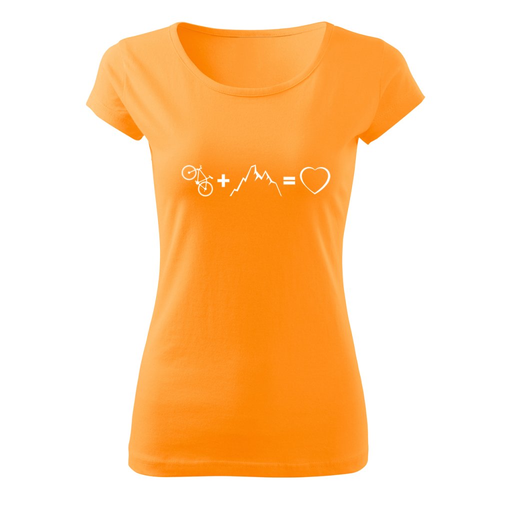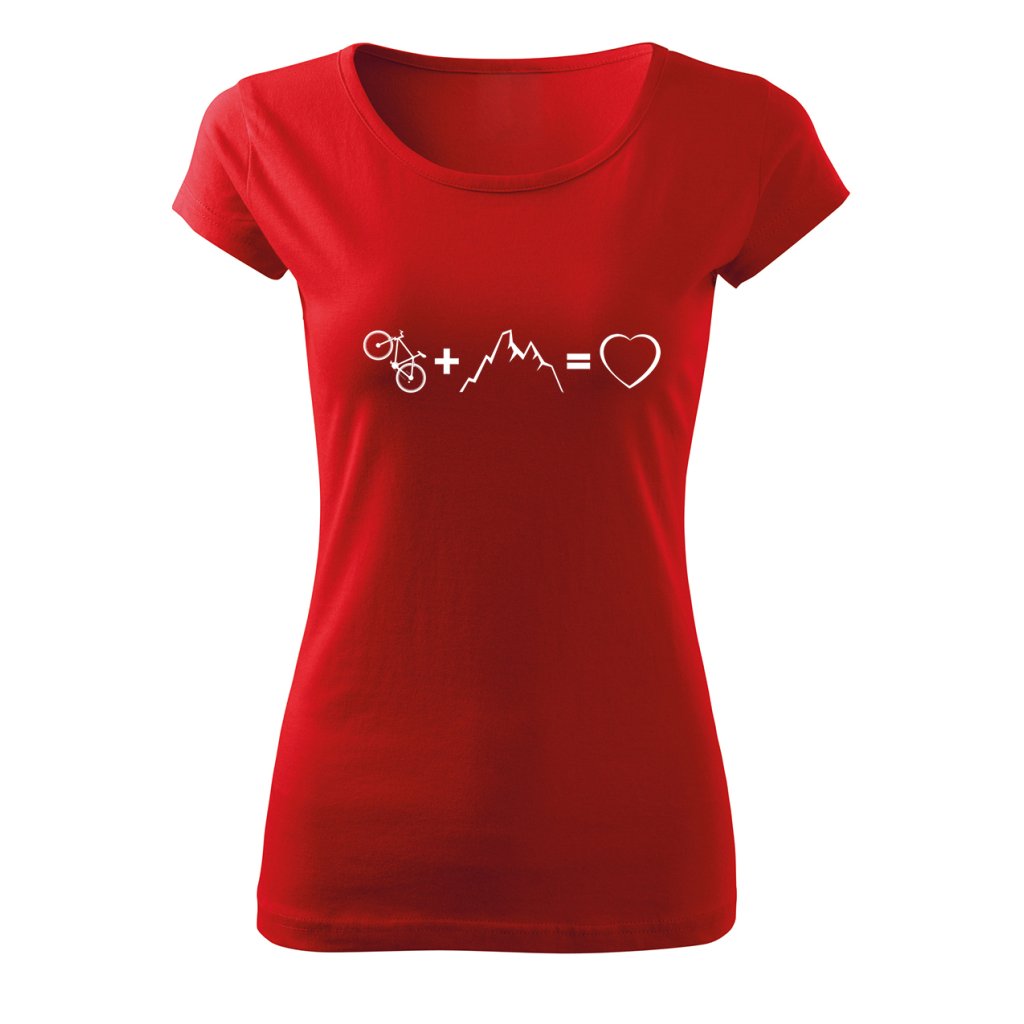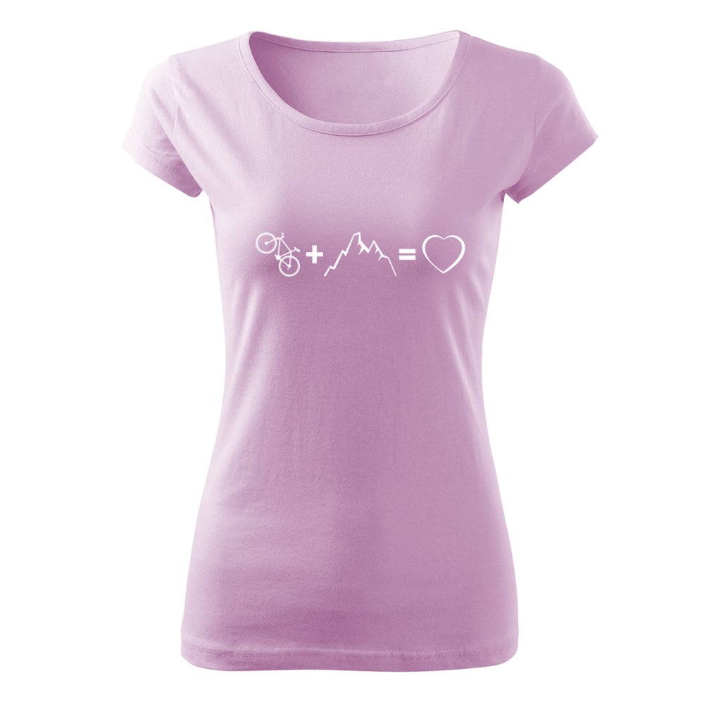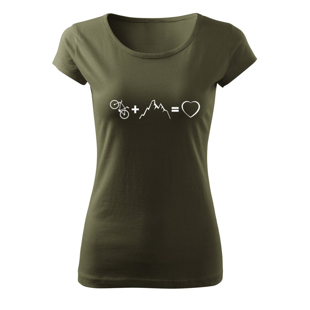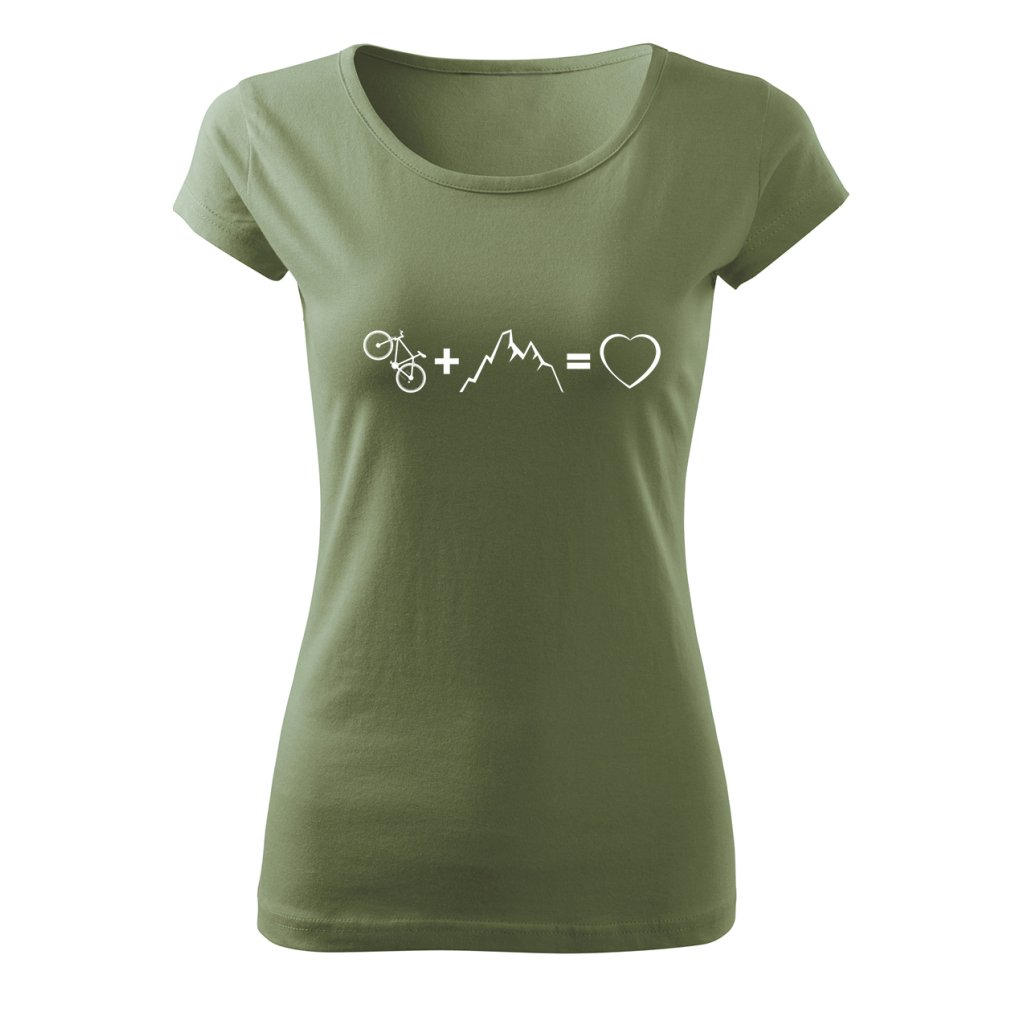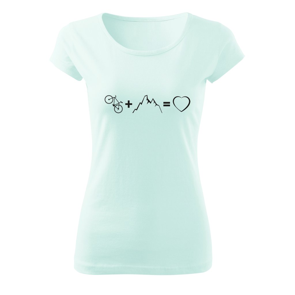 Tričko s motivem „Kolo + hory = láska“ je jako vyznání napsané na látce – jednoduché a srozumitelné. Grafika spojuje symbol kola a horských vrcholků do jednoho přímého vzkazu: cyklistika v přírodě je vaše vášeň. Příjemný materiál a pohodlný střih z něj dělají společníka na výlety i do města. Ideální pro všechny ženy, které mají srdce na dvou kolech a duši v horách. Ať už stoupáte do kopce nebo jen tak sedíte u kávy – tohle tričko vás vystihne.
