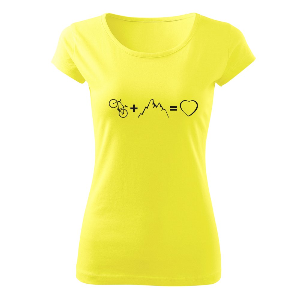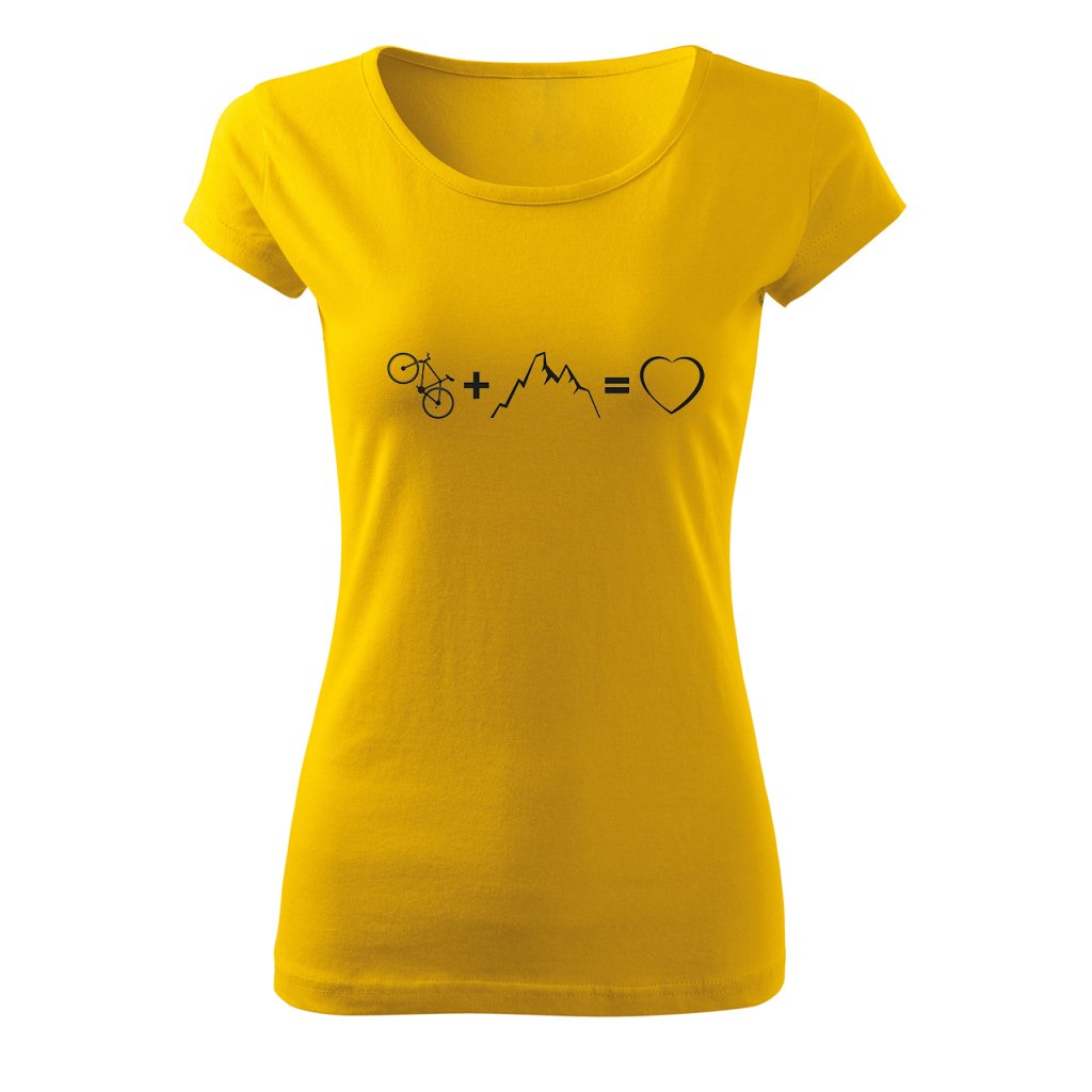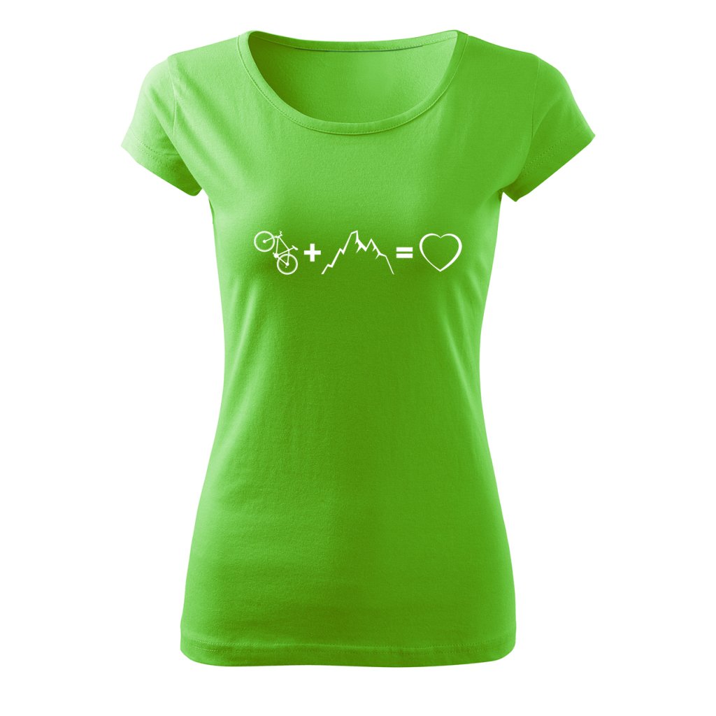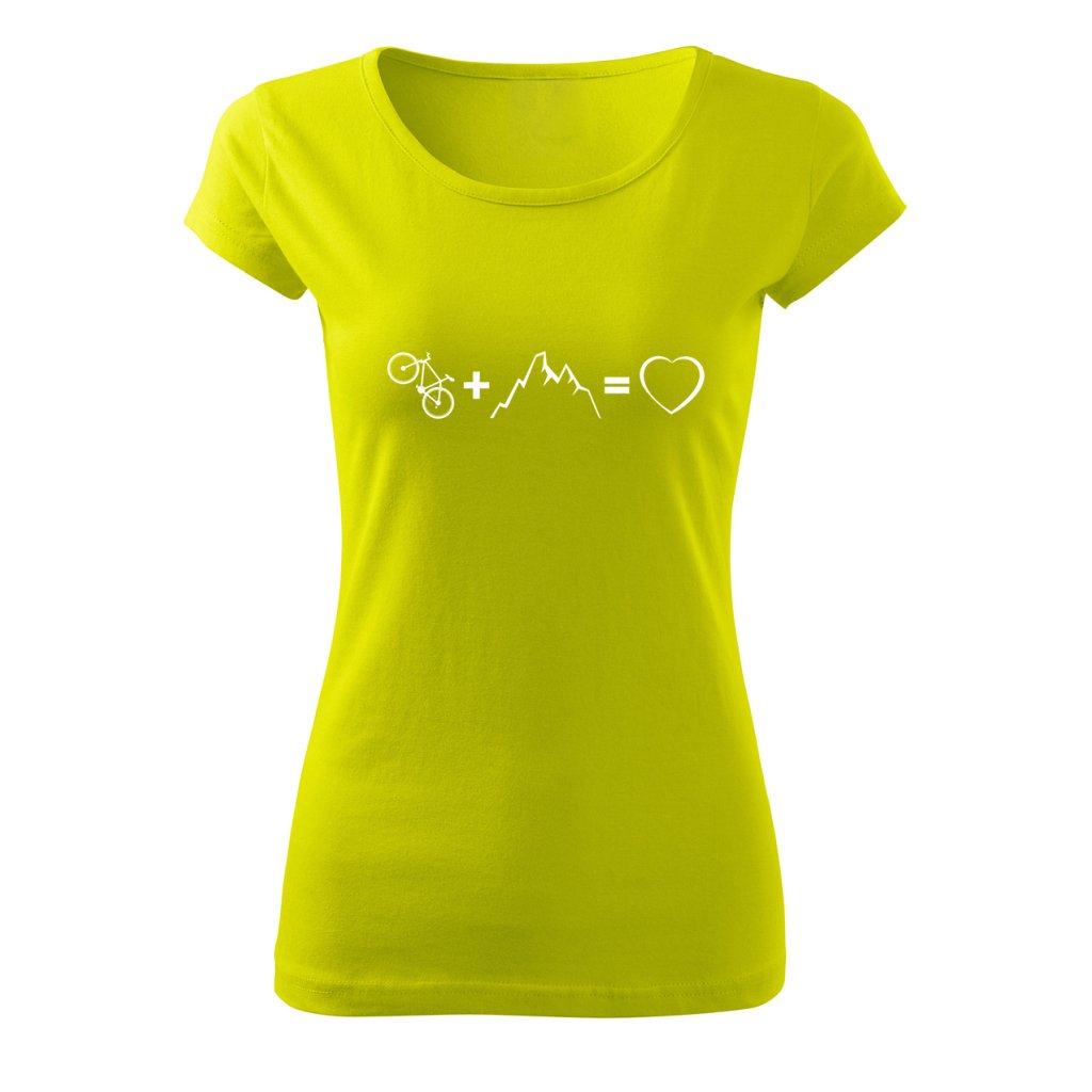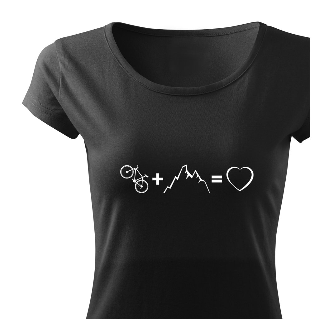 Tričko s motivem „Kolo + hory = láska“ je jako vyznání napsané na látce – jednoduché a srozumitelné. Grafika spojuje symbol kola a horských vrcholků do jednoho přímého vzkazu: cyklistika v přírodě je vaše vášeň. Příjemný materiál a pohodlný střih z něj dělají společníka na výlety i do města. Ideální pro všechny ženy, které mají srdce na dvou kolech a duši v horách. Ať už stoupáte do kopce nebo jen tak sedíte u kávy – tohle tričko vás vystihne.