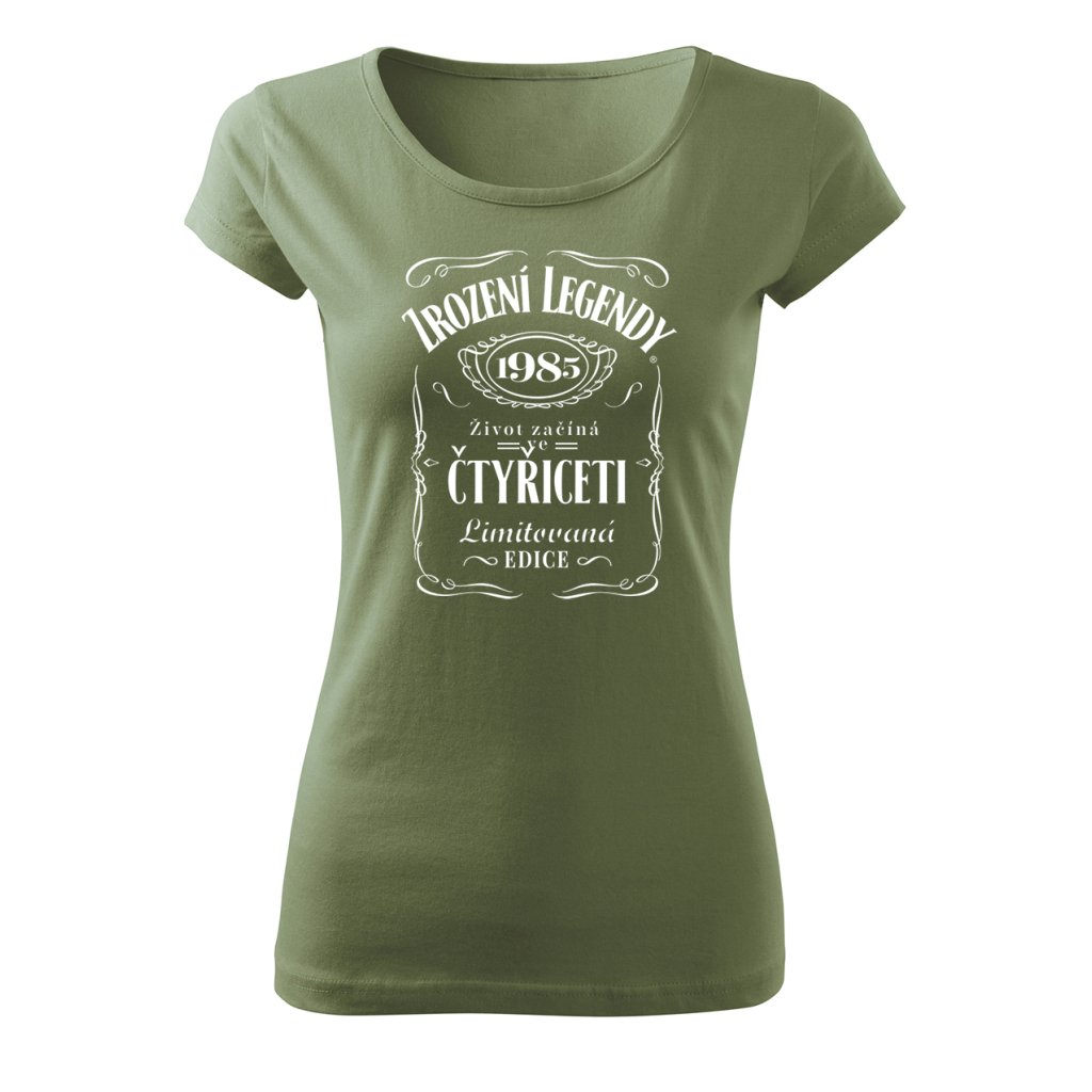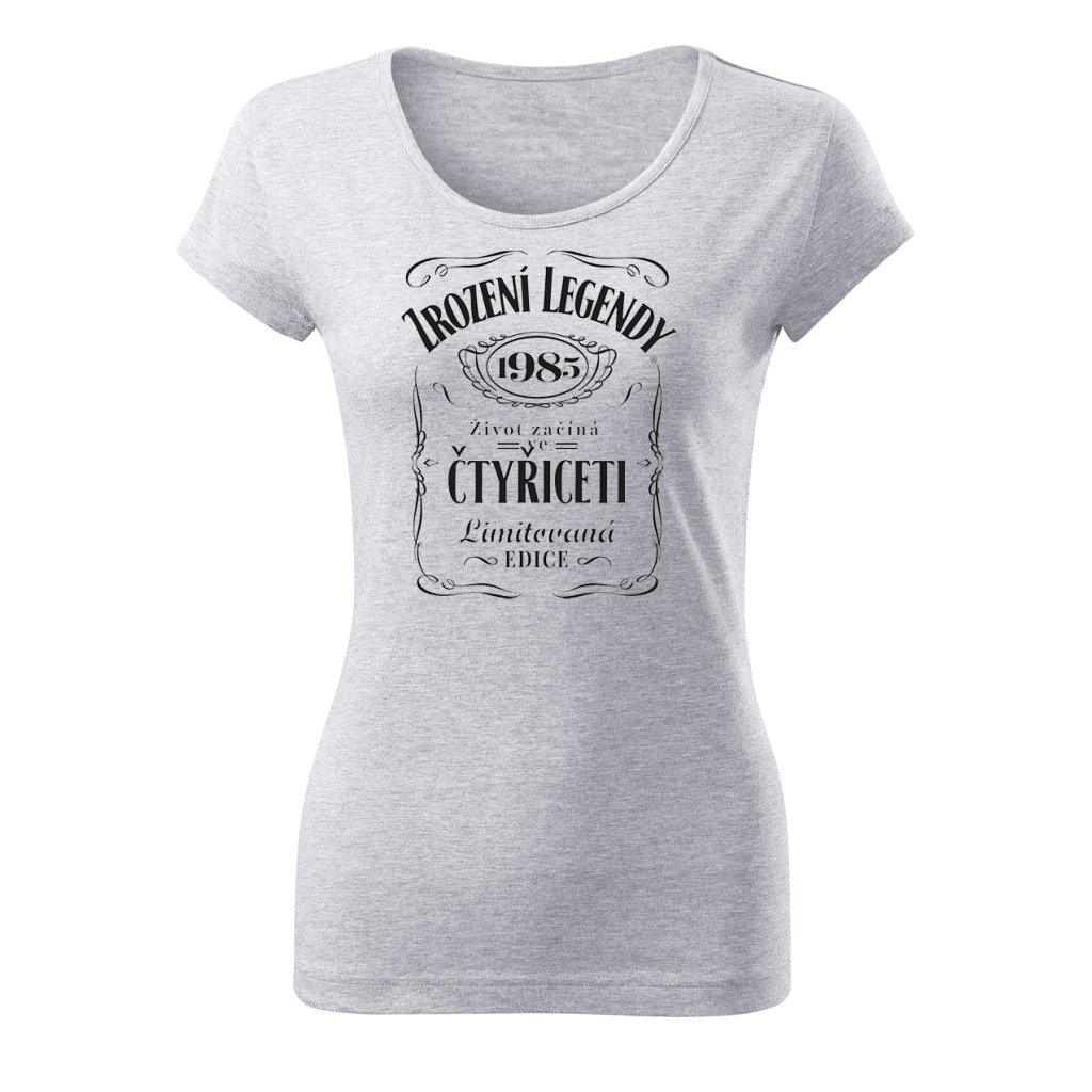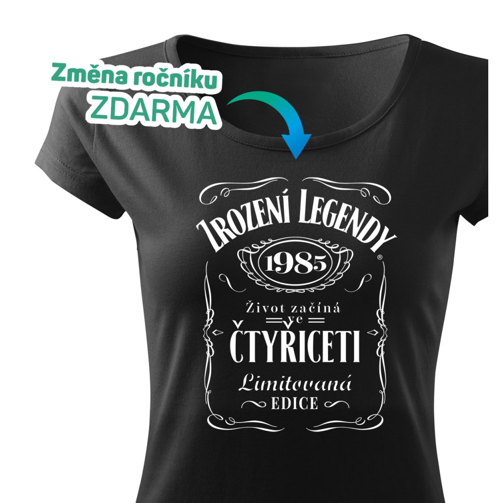 Dámské tričko se zrodilo pro ženy, které slaví stylově. Motiv připomíná klasickou whiskey etiketu, doplněný o nápisy „Zrození legendy“ a „Život začíná ve... [ročník]“. Tričko je příjemné na těle a nezklame vás ani během delší oslavy. Ideální volba pro oslavenkyni, která si zaslouží být středem pozornosti – s grácií i humorem.