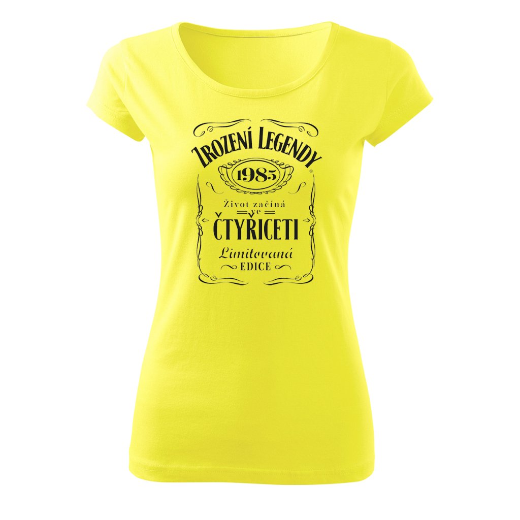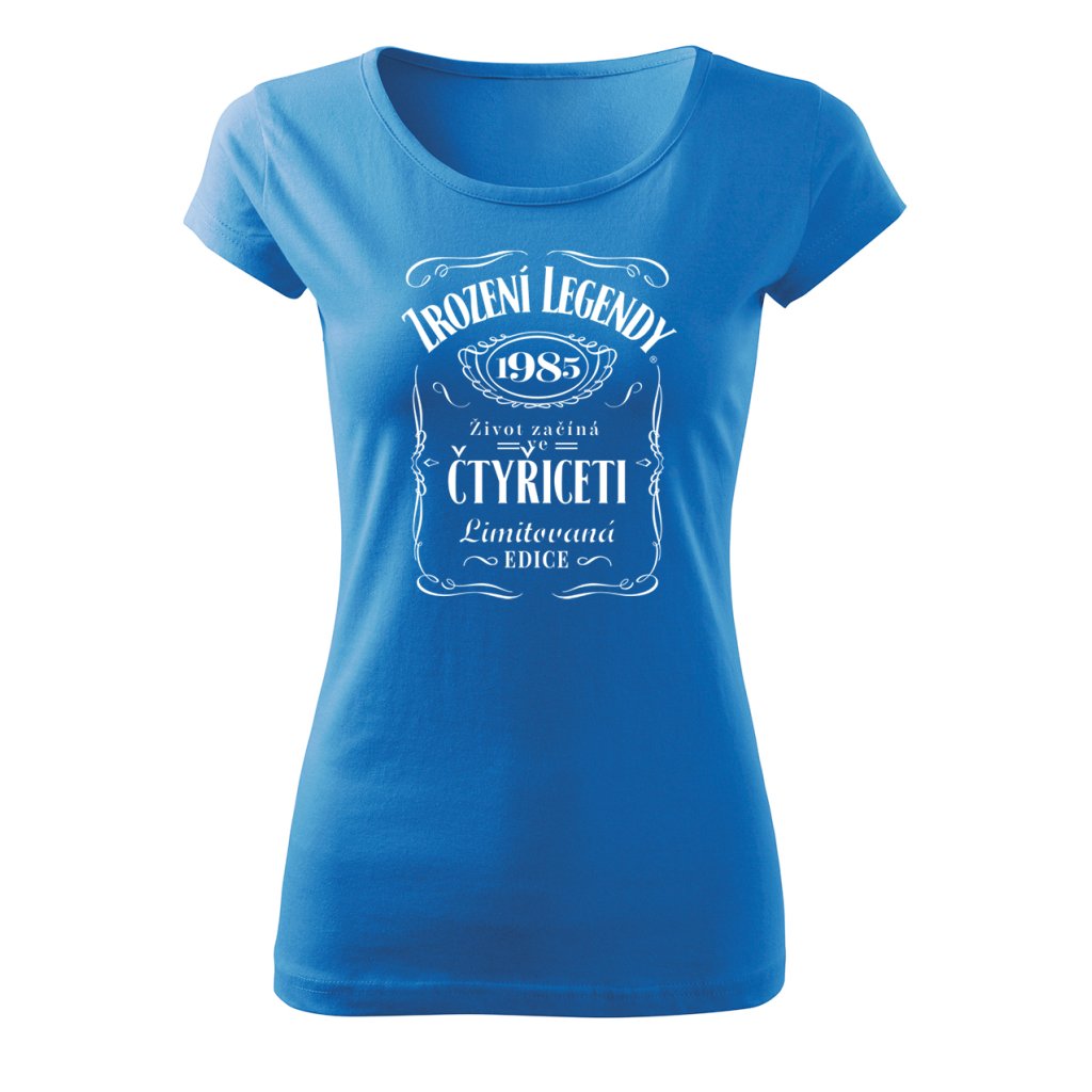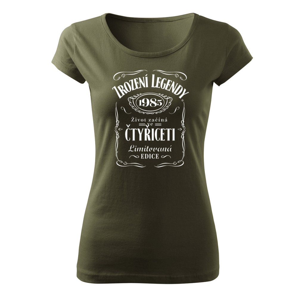Dámské tričko se zrodilo pro ženy, které slaví stylově. Motiv připomíná klasickou whiskey etiketu, doplněný o nápisy „Zrození legendy“ a „Život začíná ve... [ročník]“. Tričko je příjemné na těle a nezklame vás ani během delší oslavy. Ideální volba pro oslavenkyni, která si zaslouží být středem pozornosti – s grácií i humorem.