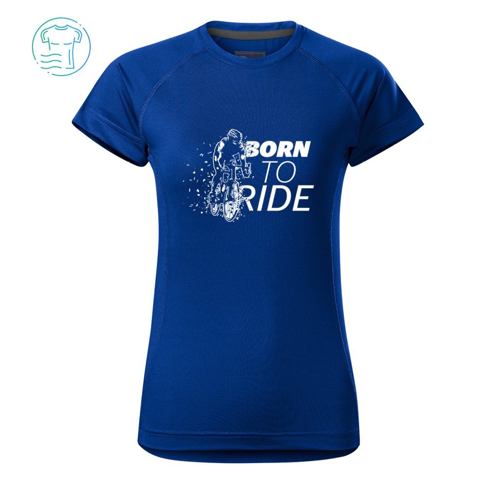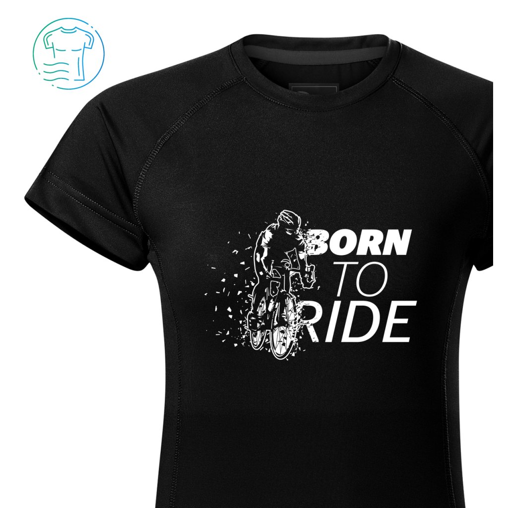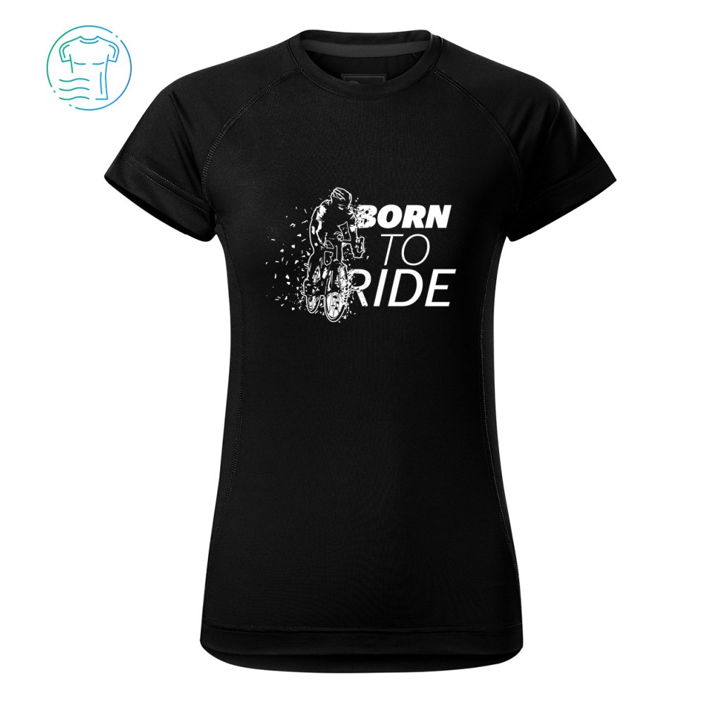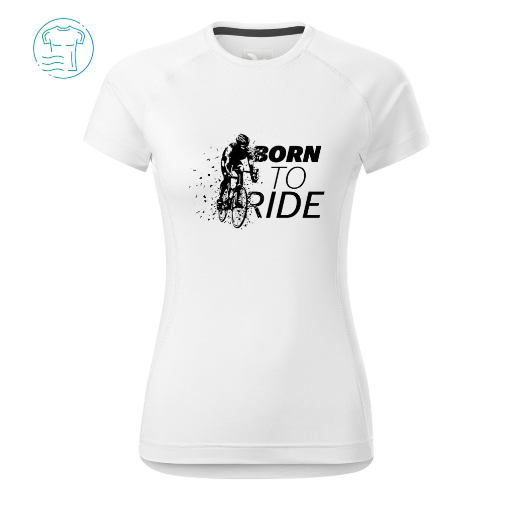 Toto dámské sportovní tričko kombinuje funkčnost, pohodlí a design, který neomrzí. Rychleschnoucí materiál je ideální pro jízdu, běh i aktivní den. Motiv cyklistky a nápis "Born to ride" říkají přesně to, co cítíte po každém výšlapu: že tohle není jen sport, ale styl života, ve kterém je místo i pro úsměv.