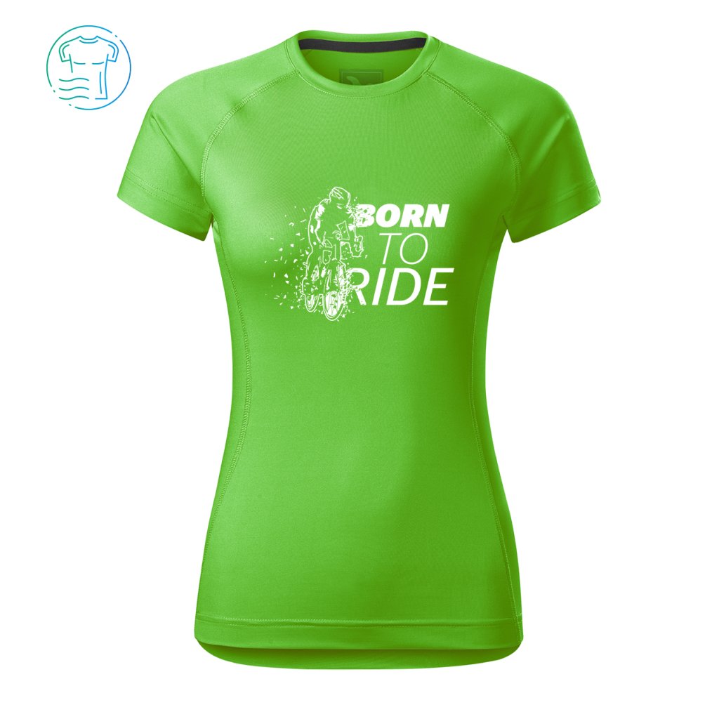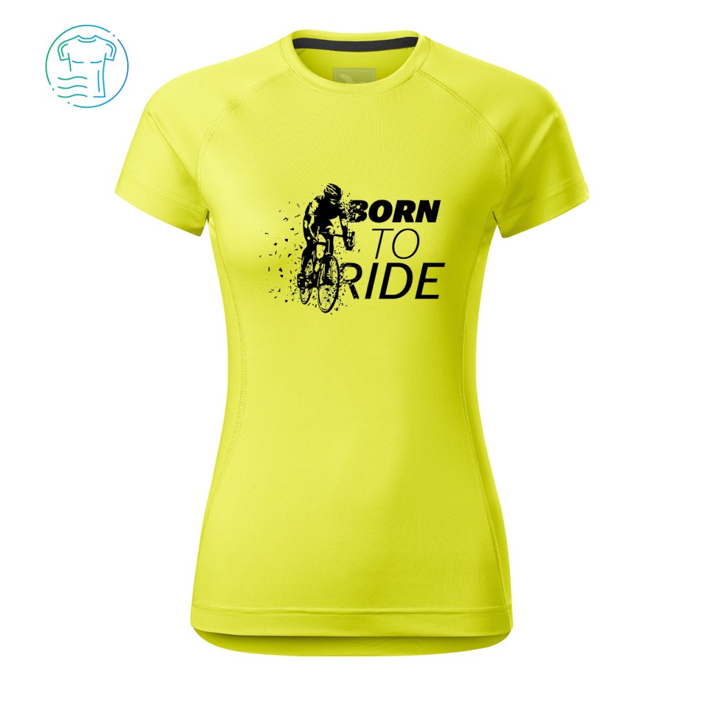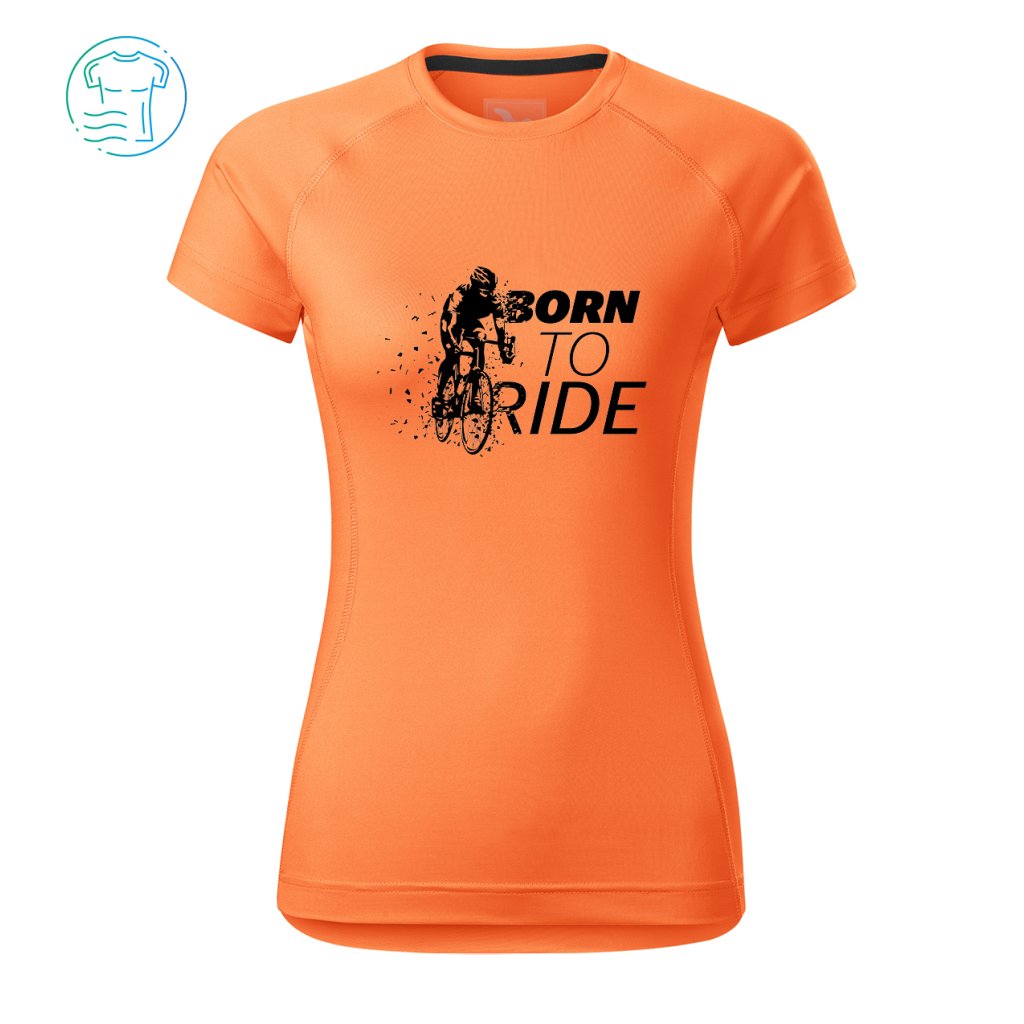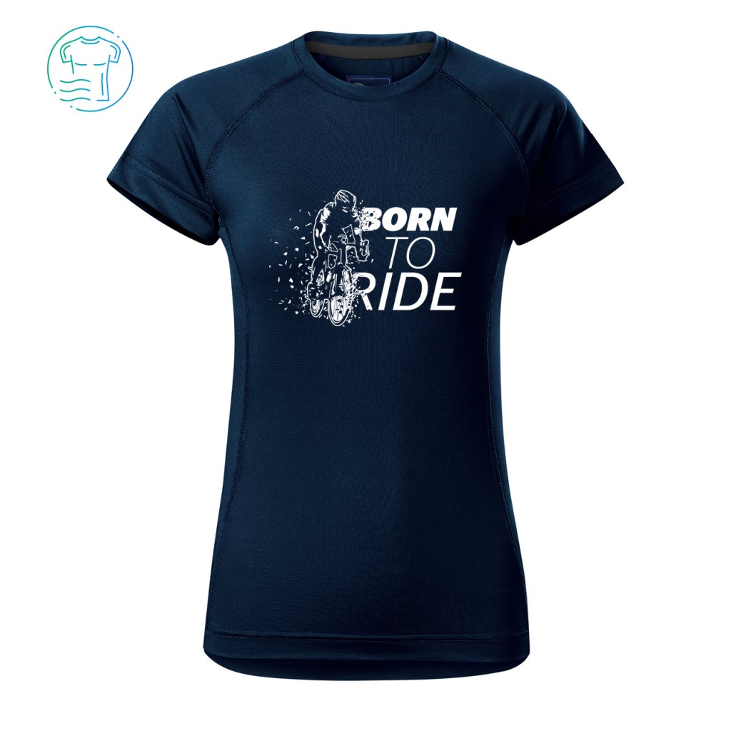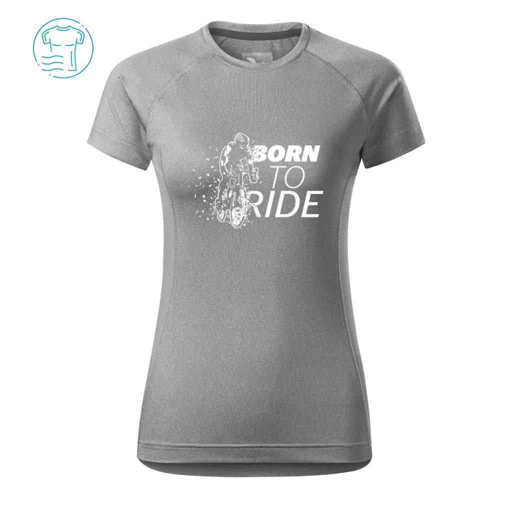 Toto dámské sportovní tričko kombinuje funkčnost, pohodlí a design, který neomrzí. Rychleschnoucí materiál je ideální pro jízdu, běh i aktivní den. Motiv cyklistky a nápis "Born to ride" říkají přesně to, co cítíte po každém výšlapu: že tohle není jen sport, ale styl života, ve kterém je místo i pro úsměv.