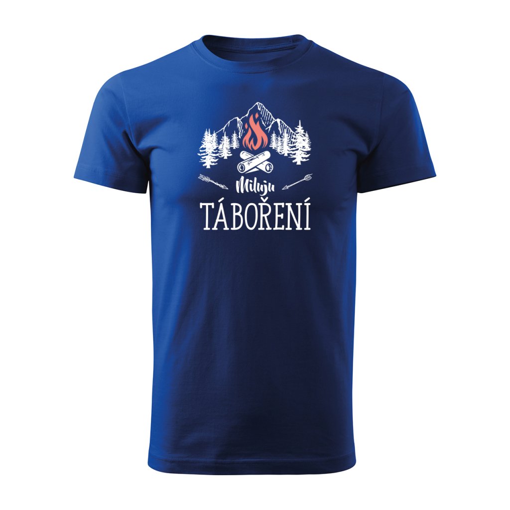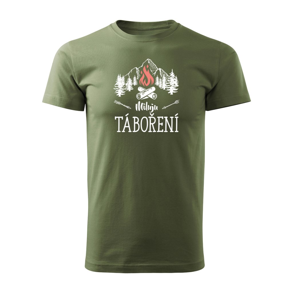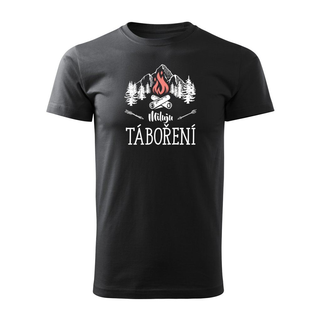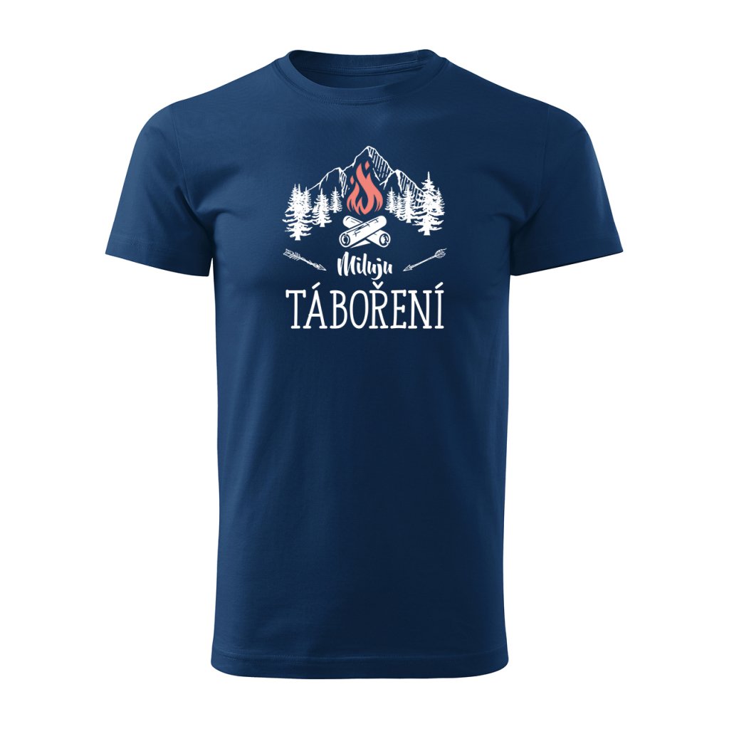 Motiv hor a táborového ohně, s nápisem "Miluju táboření" – pánské tričko.