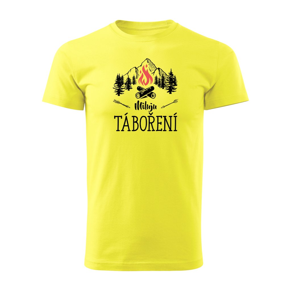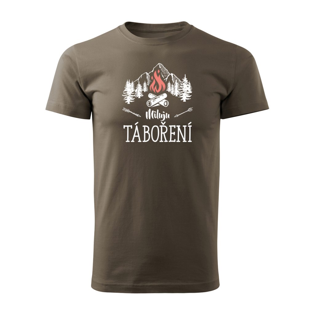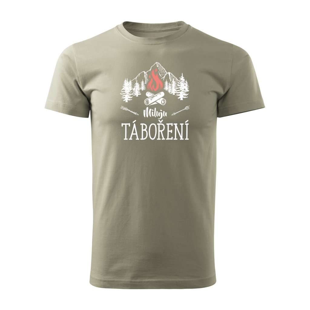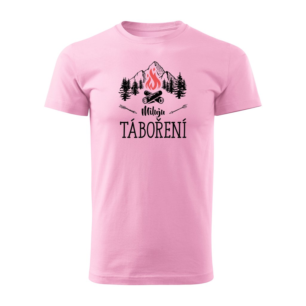 Motiv hor a táborového ohně, s nápisem "Miluju táboření" – pánské tričko.